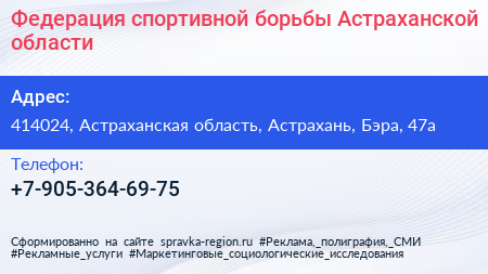 Федерация спортивной борьбы Астраханской области по адресу 414024, Астраханская область, Астрахань, Бэра, 47а в дальнейшем Организация, размещена в следующих категориях: