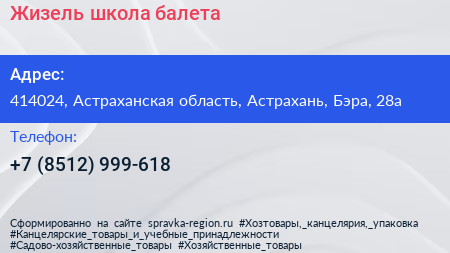 Жизель, школа балета по адресу 414024, Астраханская область, Астрахань, Бэра, 28а в дальнейшем Организация, размещена в следующих категориях: