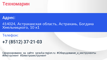 Техномарин по адресу 414024, Астраханская область, Астрахань, Богдана Хмельницкого, 10 к1 в дальнейшем Организация, размещена в следующих категориях: