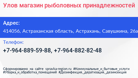 Улов, магазин рыболовных принадлежностей по адресу 414056, Астраханская область, Астрахань, Савушкина, 26а в дальнейшем Организация, размещена в следующих категориях: