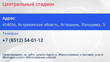 Центральный стадион по адресу 414056, Астраханская область, Астрахань, Латышева, 3 в дальнейшем Организация, размещена в следующих категориях: