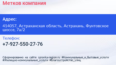 Метков, компания по адресу 414057, Астраханская область, Астрахань, Фунтовское шоссе, 7а/2 в дальнейшем Организация, размещена в следующих категориях: