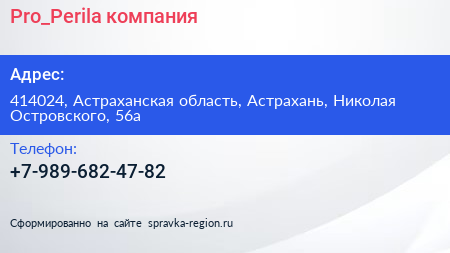 Pro_Perila, компания по адресу 414024, Астраханская область, Астрахань, Николая Островского, 56а в дальнейшем Организация, размещена в следующих категориях: