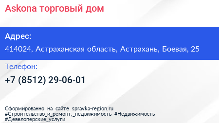 Askona, торговый дом по адресу 414024, Астраханская область, Астрахань, Боевая, 25 в дальнейшем Организация, размещена в следующих категориях:
