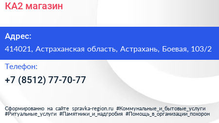 КА2, магазин по адресу 414021, Астраханская область, Астрахань, Боевая, 103/2 в дальнейшем Организация, размещена в следующих категориях: