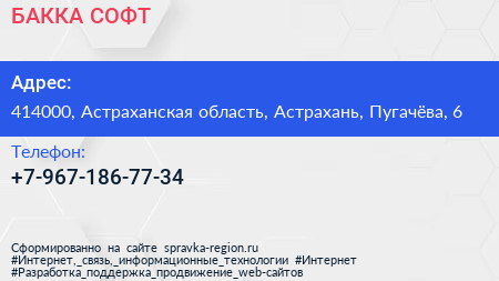 БАККА СОФТ по адресу 414000, Астраханская область, Астрахань, Пугачёва, 6 в дальнейшем Организация, размещена в следующих категориях: