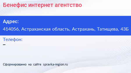 Бенефис, интернет-агентство по адресу 414056, Астраханская область, Астрахань, Татищева, 43Б в дальнейшем Организация, размещена в следующих категориях:
