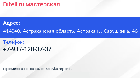 Ditell.ru, мастерская по адресу 414040, Астраханская область, Астрахань, Савушкина, 46 в дальнейшем Организация, размещена в следующих категориях: