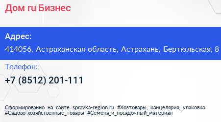 Дом.ru Бизнес по адресу 414056, Астраханская область, Астрахань, Бертюльская, 8 в дальнейшем Организация, размещена в следующих категориях:
