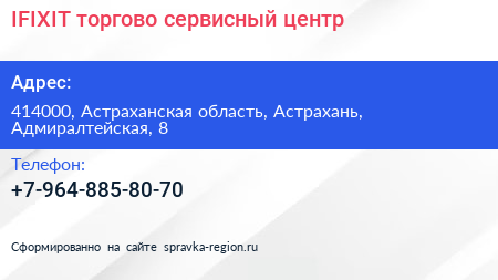 IFIXIT, торгово-сервисный центр по адресу 414000, Астраханская область, Астрахань, Адмиралтейская, 8 в дальнейшем Организация, размещена в следующих категориях: