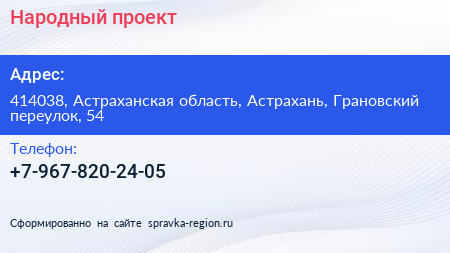 Народный проект по адресу 414038, Астраханская область, Астрахань, Грановский переулок, 54 в дальнейшем Организация, размещена в следующих категориях: