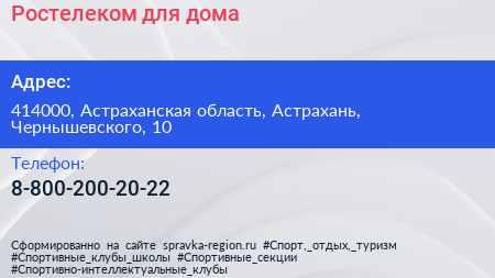 Ростелеком для дома по адресу 414000, Астраханская область, Астрахань, Чернышевского, 10 в дальнейшем Организация, размещена в следующих категориях: