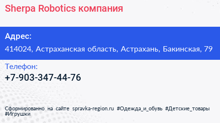 Sherpa Robotics, компания по адресу 414024, Астраханская область, Астрахань, Бакинская, 79 в дальнейшем Организация, размещена в следующих категориях: