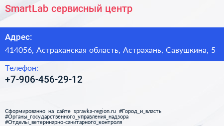 SmartLab, сервисный центр по адресу 414056, Астраханская область, Астрахань, Савушкина, 5 в дальнейшем Организация, размещена в следующих категориях:
