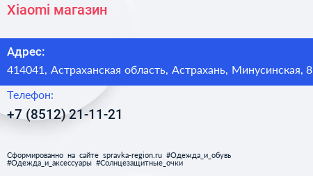 Xiaomi, магазин по адресу 414041, Астраханская область, Астрахань, Минусинская, 8 в дальнейшем Организация, размещена в следующих категориях: