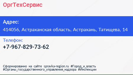 ОргТехСервис по адресу 414056, Астраханская область, Астрахань, Татищева, 14 в дальнейшем Организация, размещена в следующих категориях: