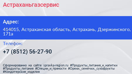 Астраханьгазсервис по адресу 414015, Астраханская область, Астрахань, Дзержинского, 171а в дальнейшем Организация, размещена в следующих категориях: