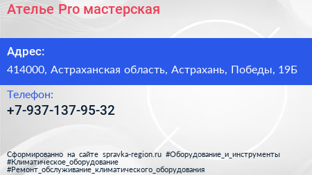 Ателье-Pro, мастерская по адресу 414000, Астраханская область, Астрахань, Победы, 19Б в дальнейшем Организация, размещена в следующих категориях: