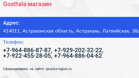 Gosttala, магазин по адресу 414011, Астраханская область, Астрахань, Латвийская, 38а в дальнейшем Организация, размещена в следующих категориях: