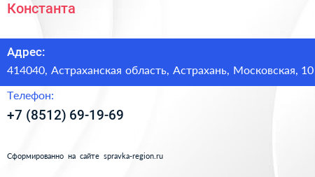 Константа по адресу 414040, Астраханская область, Астрахань, Московская, 10 в дальнейшем Организация, размещена в следующих категориях: