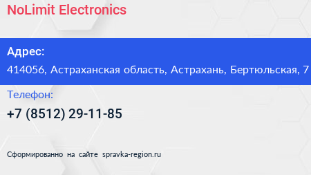 NoLimit Electronics по адресу 414056, Астраханская область, Астрахань, Бертюльская, 7 в дальнейшем Организация, размещена в следующих категориях: