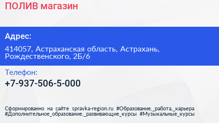 ПОЛИВ, магазин по адресу 414057, Астраханская область, Астрахань, Рождественского, 2Б/6 в дальнейшем Организация, размещена в следующих категориях: