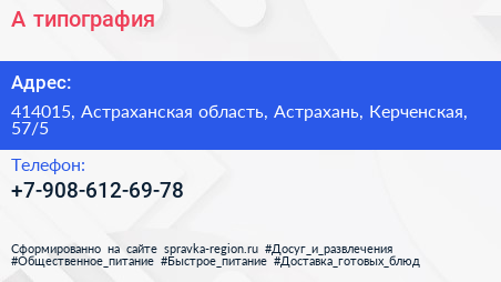 А, типография по адресу 414015, Астраханская область, Астрахань, Керченская, 57/5 в дальнейшем Организация, размещена в следующих категориях: