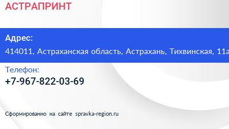 АСТРАПРИНТ по адресу 414011, Астраханская область, Астрахань, Тихвинская, 11а в дальнейшем Организация, размещена в следующих категориях: