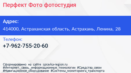 Перфект Фото, фотостудия по адресу 414000, Астраханская область, Астрахань, Ленина, 28 в дальнейшем Организация, размещена в следующих категориях: