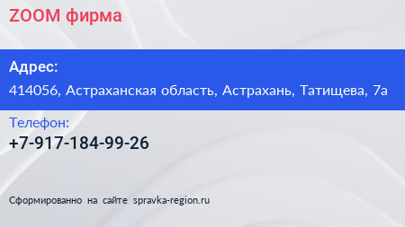 ZOOM, фирма по адресу 414056, Астраханская область, Астрахань, Татищева, 7а в дальнейшем Организация, размещена в следующих категориях: