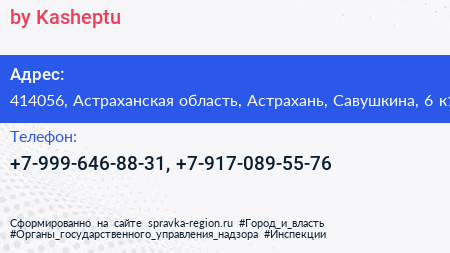 by Kasheptu по адресу 414056, Астраханская область, Астрахань, Савушкина, 6 к1 в дальнейшем Организация, размещена в следующих категориях: