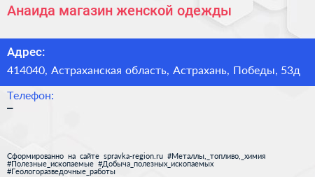 Анаида, магазин женской одежды по адресу 414040, Астраханская область, Астрахань, Победы, 53д в дальнейшем Организация, размещена в следующих категориях:
