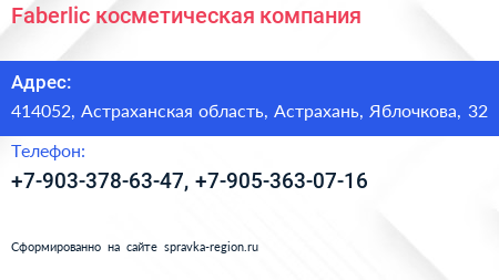 Faberlic, косметическая компания по адресу 414052, Астраханская область, Астрахань, Яблочкова, 32 в дальнейшем Организация, размещена в следующих категориях: