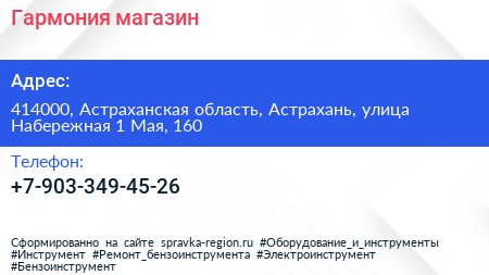 Гармония, магазин по адресу 414000, Астраханская область, Астрахань, улица Набережная 1 Мая, 160 в дальнейшем Организация, размещена в следующих категориях: