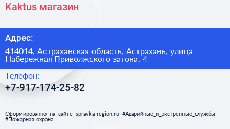 Kaktus, магазин по адресу 414014, Астраханская область, Астрахань, улица Набережная Приволжского затона, 4 в дальнейшем Организация, размещена в следующих категориях: