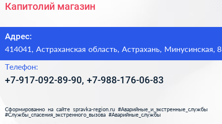 Капитолий, магазин по адресу 414041, Астраханская область, Астрахань, Минусинская, 8 в дальнейшем Организация, размещена в следующих категориях: