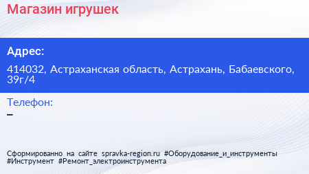 Магазин игрушек по адресу 414032, Астраханская область, Астрахань, Бабаевского, 39г/4 в дальнейшем Организация, размещена в следующих категориях: