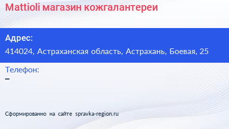 Mattioli, магазин кожгалантереи по адресу 414024, Астраханская область, Астрахань, Боевая, 25 в дальнейшем Организация, размещена в следующих категориях: