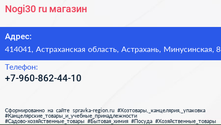 Nogi30.ru, магазин по адресу 414041, Астраханская область, Астрахань, Минусинская, 8 в дальнейшем Организация, размещена в следующих категориях: