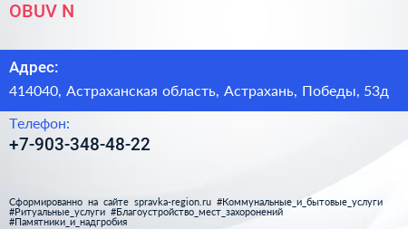 OBUV-N по адресу 414040, Астраханская область, Астрахань, Победы, 53д в дальнейшем Организация, размещена в следующих категориях: