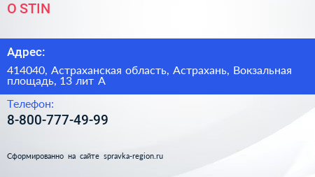 O`STIN по адресу 414040, Астраханская область, Астрахань, Вокзальная площадь, 13 лит А в дальнейшем Организация, размещена в следующих категориях: