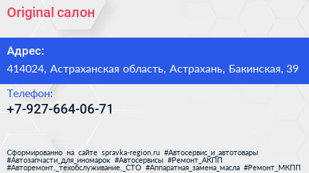Original, салон по адресу 414024, Астраханская область, Астрахань, Бакинская, 39 в дальнейшем Организация, размещена в следующих категориях: