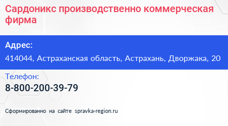 Сардоникс, производственно-коммерческая фирма по адресу 414044, Астраханская область, Астрахань, Дворжака, 20 в дальнейшем Организация, размещена в следующих категориях:
