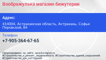 Воображулька, магазин бижутерии по адресу 414004, Астраханская область, Астрахань, Софьи Перовской, 84 в дальнейшем Организация, размещена в следующих категориях: