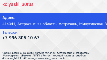 #kolyaski_30rus по адресу 414041, Астраханская область, Астрахань, Минусинская, 8 в дальнейшем Организация, размещена в следующих категориях: