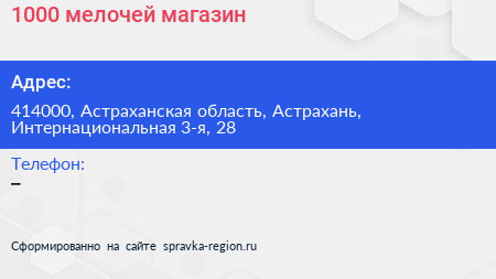 1000 мелочей, магазин по адресу 414000, Астраханская область, Астрахань, Интернациональная 3-я, 28 в дальнейшем Организация, размещена в следующих категориях: