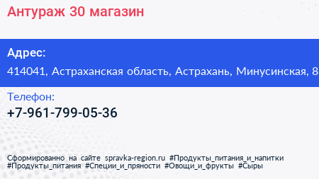 Антураж.30, магазин по адресу 414041, Астраханская область, Астрахань, Минусинская, 8 в дальнейшем Организация, размещена в следующих категориях: