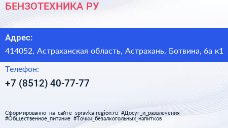 БЕНЗОТЕХНИКА.РУ по адресу 414052, Астраханская область, Астрахань, Ботвина, 6а к1 в дальнейшем Организация, размещена в следующих категориях: