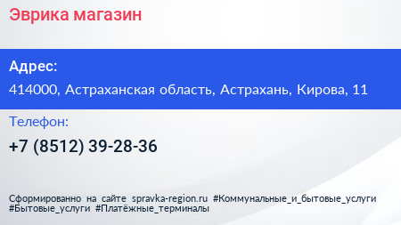 Эврика, магазин по адресу 414000, Астраханская область, Астрахань, Кирова, 11 в дальнейшем Организация, размещена в следующих категориях: