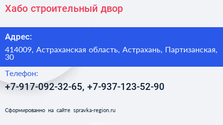 Хабо, строительный двор по адресу 414009, Астраханская область, Астрахань, Партизанская, 30 в дальнейшем Организация, размещена в следующих категориях: